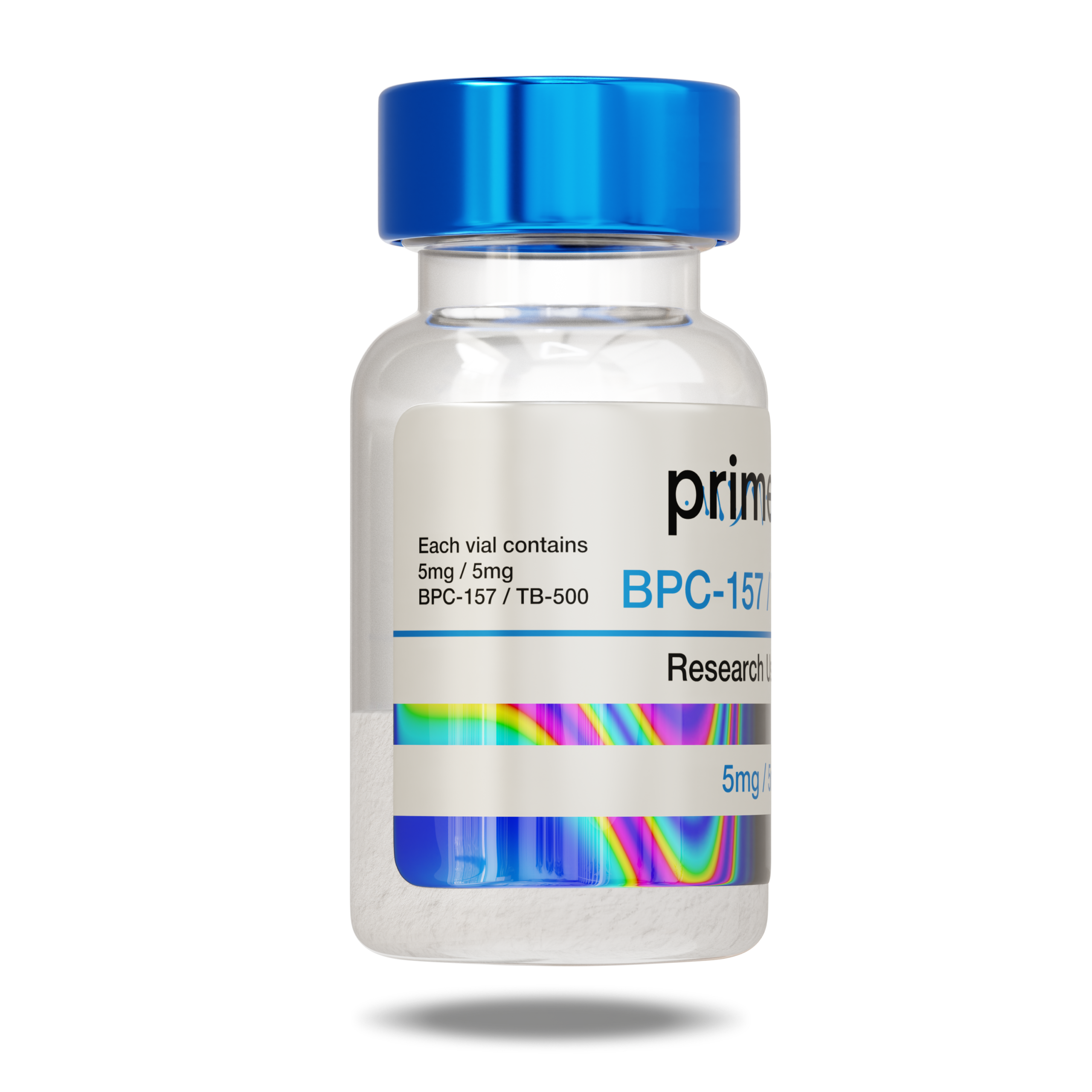 BPC-157 / TB-500 (5 mg / 5 mg) is a complementary research peptide blend combining BPC-157 (a gastric pentadecapeptide fragment) and TB-500 (a thymosin β4–derived fragment) often studied together in models of tissue protection, regeneration, and recovery.
